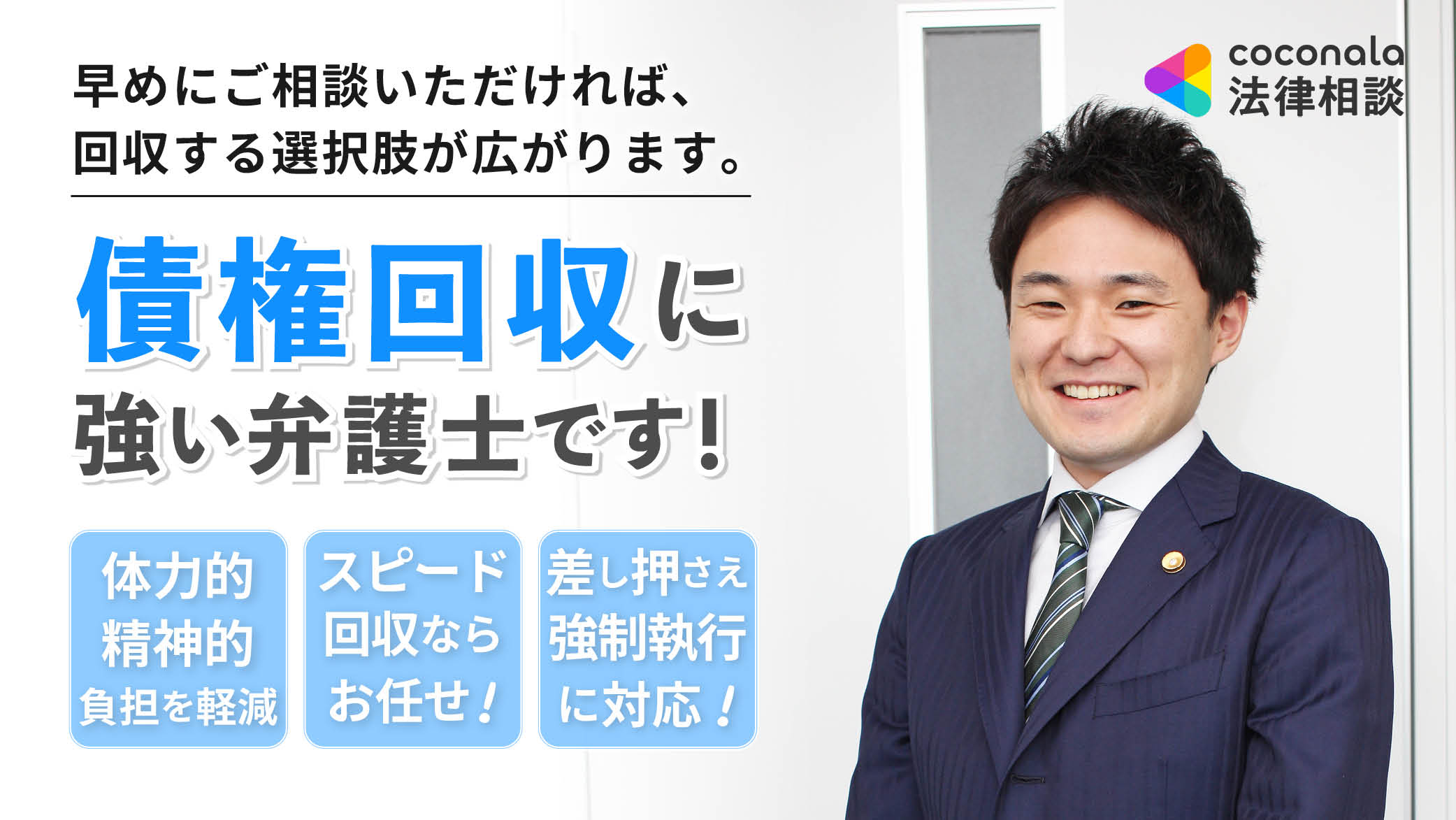 私にご依頼いただければ、高い交渉力とノウハウを生かしたスピード回収が可能ですので、ぜひ私にご相談ください。