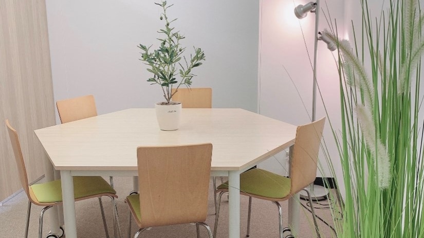 - 明るい雰囲気の相談室。