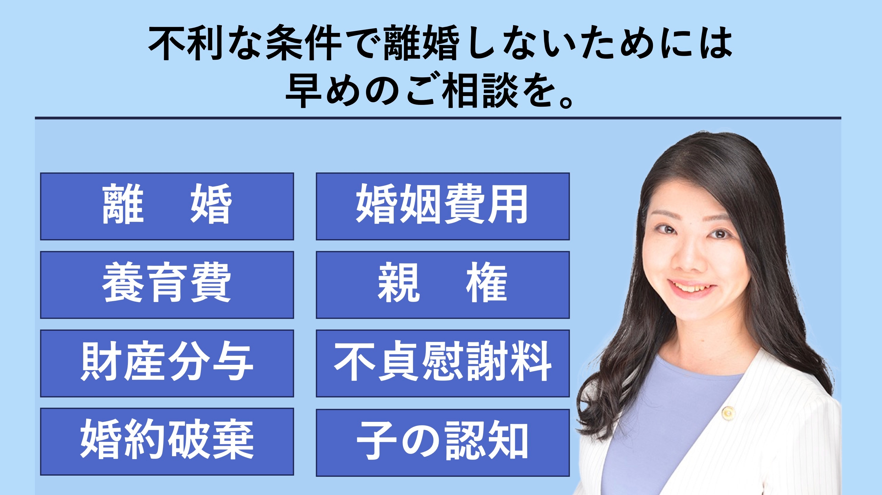 ◤完全予約制・初回相談無料◢🔴離婚・別居・財産分与・親権問題・不倫慰謝料トラブルなど、離婚・男女問題に関するご相談を承ります。🔴この分野に力を入れている弁護士が、解決までしっかりサポートいたします。まずはお気軽にお問い合わせください。