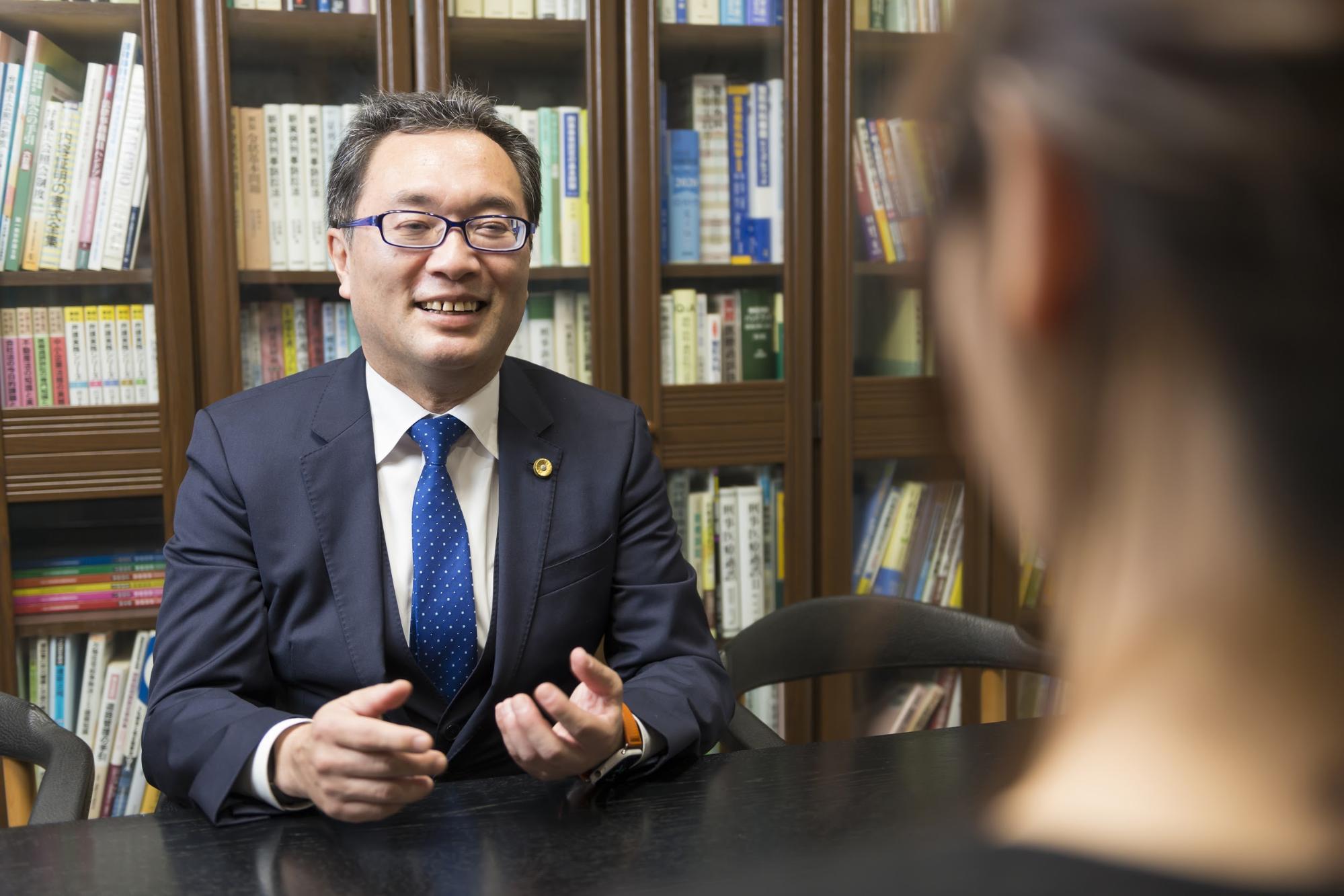 華々しい経歴をもつ小早川先生ですが、イメージとは裏腹に物腰は柔らかく、地域密着型の「町の弁護士」として相談者と親しい距離感で接しています。