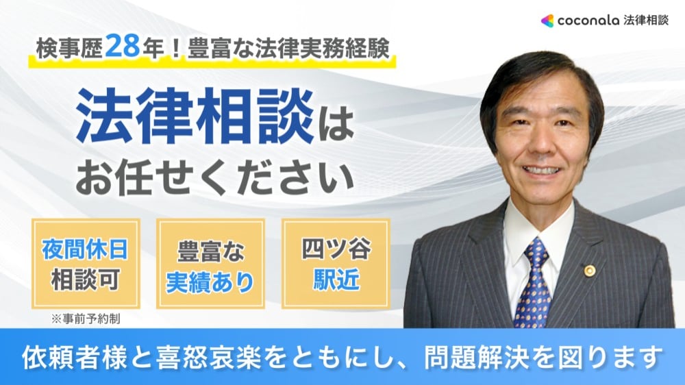【検事歴28年】ご依頼者様に寄り添い、問題解決に全力を尽くします。企業法務/民商事事件/家事事件など、あらゆる分野に対応【四谷三丁目駅6分】長年検事として尋常でない世界を見てきた体験がフルに生かせる分野と考えています。