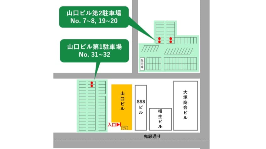事務所横に専用駐車場をご用意しております。