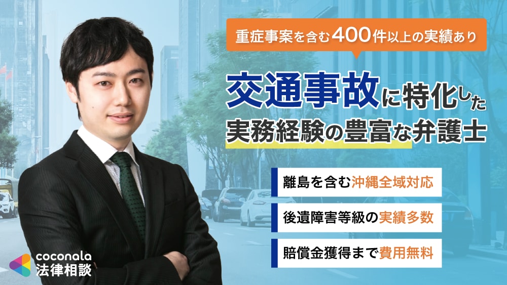 【地元沖縄の弁護士】【県外で交通事故に特化した弁護士としての豊富な実務経験】【初回相談で後遺障害等級や賠償額の見込みまで詳細にご説明】【賠償金獲得まで費用はかかりません】【沖縄県全域(離島含む)対応◎】