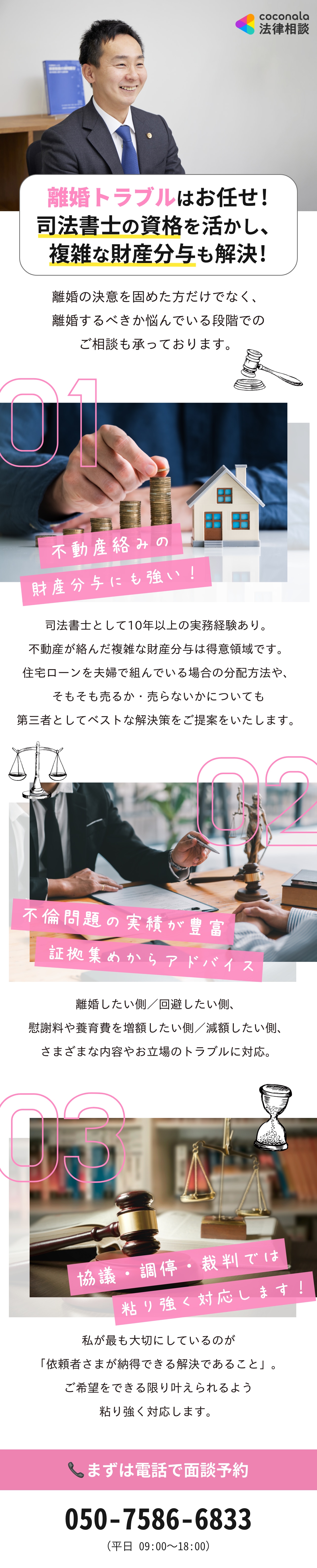 私は司法書士として、10年以上の実務経験があり、離婚問題も数多く取り扱ってきました。